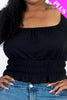 This top offers a great mix of trendy and timeless design. The ruched puff sleeves provide a feminine touch, while the high-stretch fabric ensures you feel comfortable all day long. The classic Black color makes it a wardrobe staple, perfect for creating versatile outfits that work for both casual and dressy occasions.