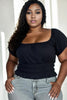 Elevate your everyday style with our Plus Size Casual Ruched Puff Sleeve Ribbed Knit Solid Top in Black. This chic and comfortable top features a flattering ribbed knit design with ruched puff sleeves that add a touch of feminine flair. Made from a soft, lightweight, and highly stretchy fabric, it offers both flexibility and a smooth, body-hugging fit. The versatile Black color makes it easy to pair with almost anything in your wardrobe, giving you countless styling options for any occasion.