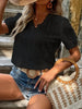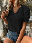 Full Size Eyelet V-Neck Short Sleeve Blouse Plus Size