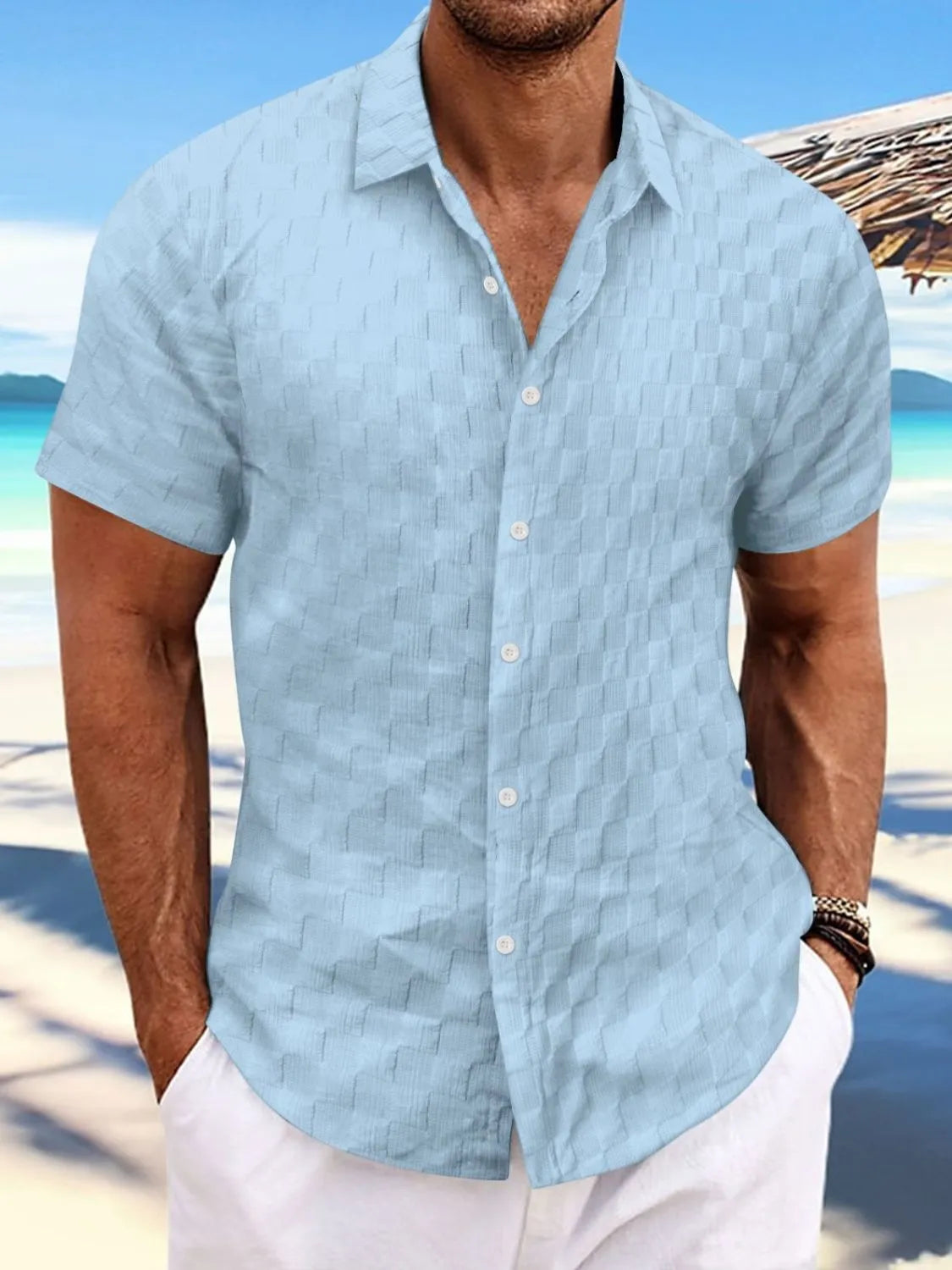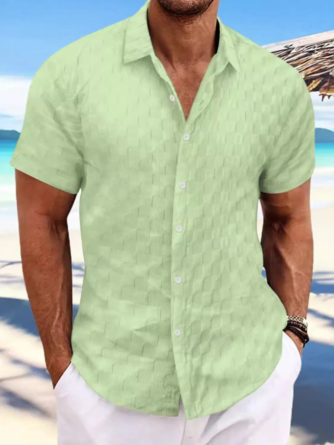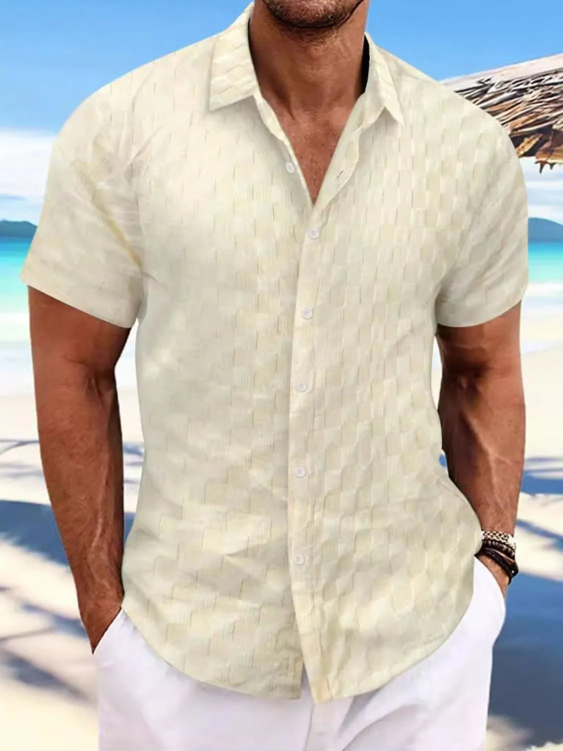 Men's Full Size Button Up Short Sleeve Shirt