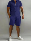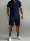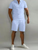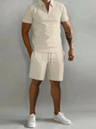 Men's Plus Size Collared Top and Shorts Set