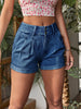 Pleated Detail High Rise Denim Shorts