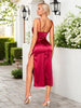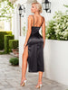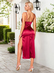 Split Ruched Satin Zip Back Midi Cami Dress