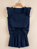 Textured Square Neck Top and Shirred High Waist Shorts Set