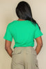Fabric: A blend of 92% polyester and 8% spandex, providing a lightweight, breathable feel with added stretch for a perfect fit Fit: Slim, cropped fit with a tie-front design and short sleeves for a relaxed yet trendy silhouette Color Options: Available in black, fuchsia, Ibiza blue, green, and white Sizes: Available in sizes Small, Medium, and Large Design: Features a drawstring tie at the front that allows you to adjust the fit, paired with a stylish cropped length Versatile Styling: Pair with high-waisted jeans, skirts, or shorts for a chic, laid-back look perfect for warmer weather